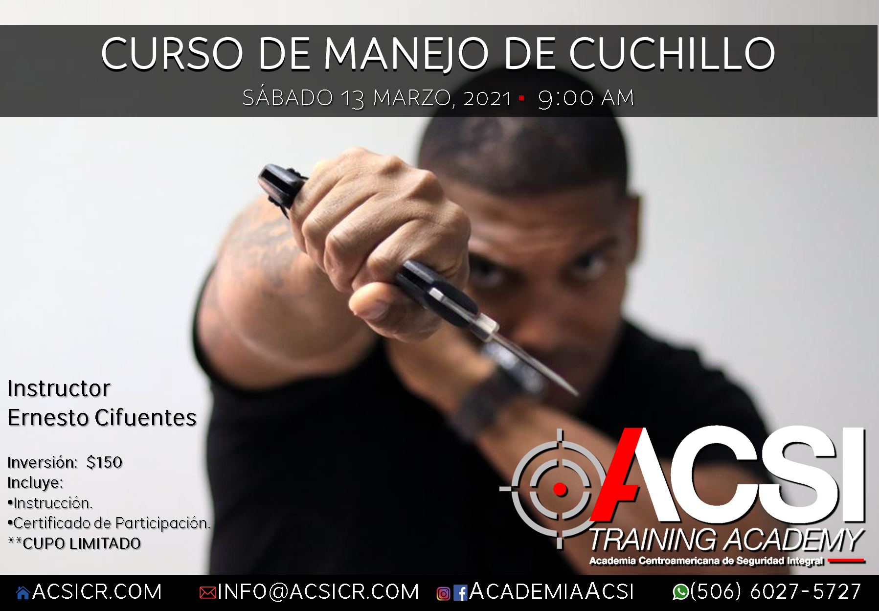 Curso Manejo de Cuchillo Instructor Ernesto Cifuentes Inversión: $150 Incluye: Instrucción. Certificado de Participación. **CUPO LIMITADO + Add to Google Calendar + iCal export Date Mar 13 2021 Time 9:00 am - 4:00 pm Costo $150 Category Cuchillo Share this event