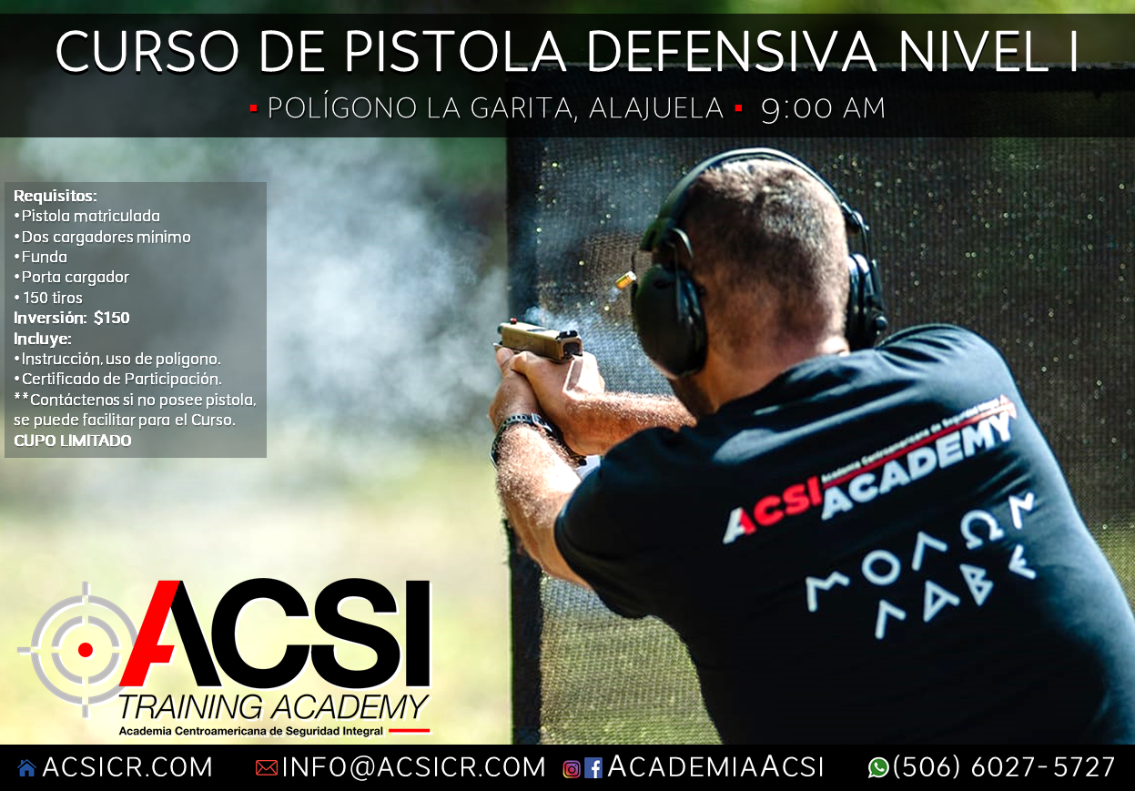 Pistola Defensiva Nivel 1 + Add to Google Calendar + iCal export Date Jul 22 2020 Time All of the day Costo $150 Location Polígono La Garita Alajuela Category Pistola Share this event
